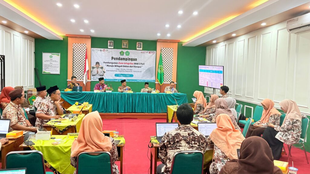 Pati, 18 Agustus 2025 – MAN 2 Pati menerima kunjungan Tim Direktorat Jenderal Pendidikan Islam (Dirjen Pendis) Kementerian Agama Republik Indonesia dalam rangka Pendampingan Pembangunan Zona Integritas. Kegiatan ini diharapkan mampu memperkuat langkah MAN 2 Pati menuju satuan kerja berpredikat Wilayah Bebas dari Korupsi (WBK).